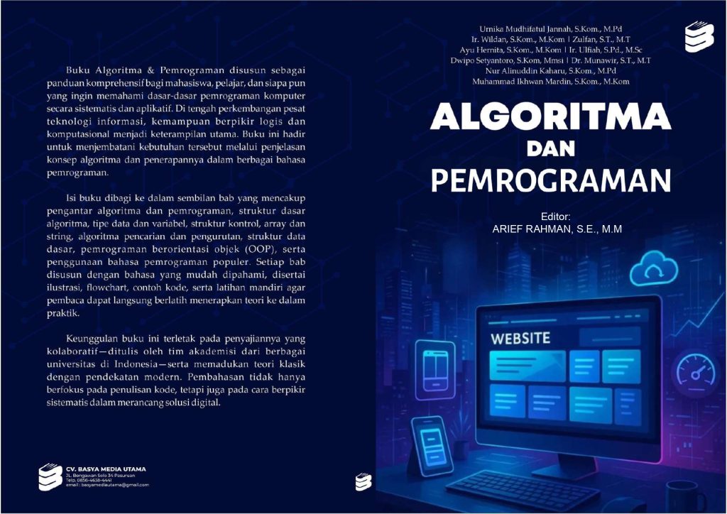 Buku Algoritma & Pemrograman disusun sebagai panduan komprehensif bagi mahasiswa, pelajar, dan siapa pun yang ingin memahami dasar-dasar pemrograman komputer secara sistematis dan aplikatif. Di tengah perkembangan pesat teknologi informasi, kemampuan berpikir logis dan komputasional menjadi keterampilan utama. Buku ini hadir untuk menjembatani kebutuhan tersebut melalui penjelasan konsep algoritma dan penerapannya dalam berbagai bahasa pemrograman.
